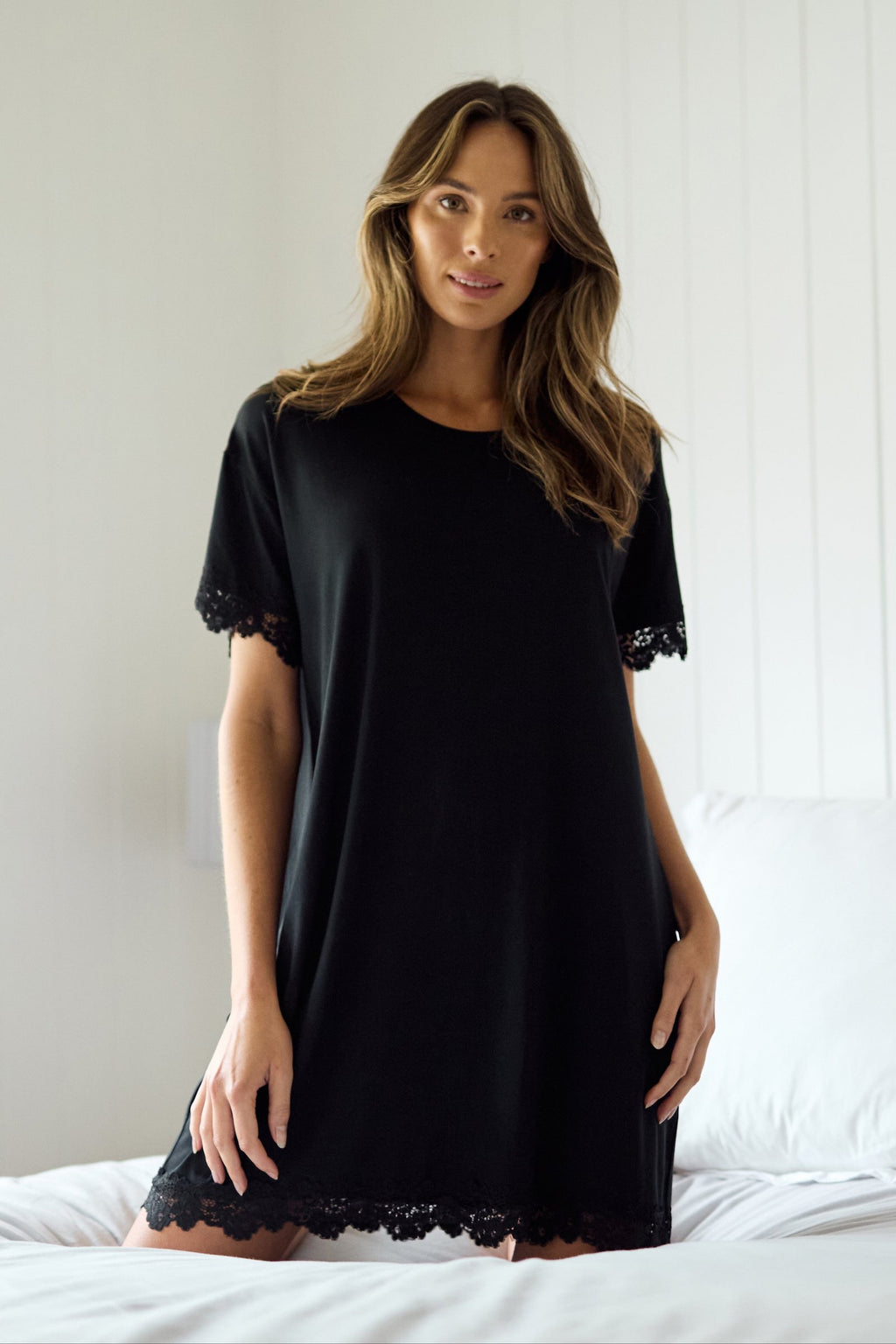 Crafted from butter-soft modal fabric with super-soft stretch lace details, this elevated and elegant Sleep Tee Nightie will feel like a dream on your skin.