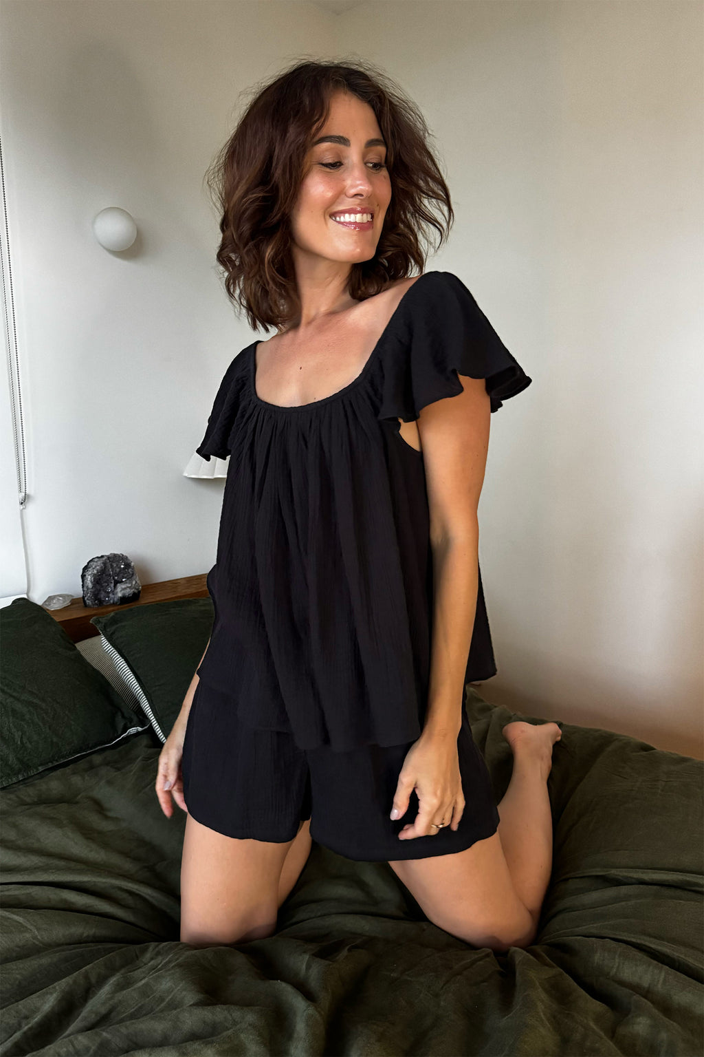 Crafted from butter-soft modal fabric with super-soft stretch lace details, this set features a stunning cami with a flattering V-neckline and shorts with elastic waistband. Chic yet cosy, this set is perfect for lounging at home.