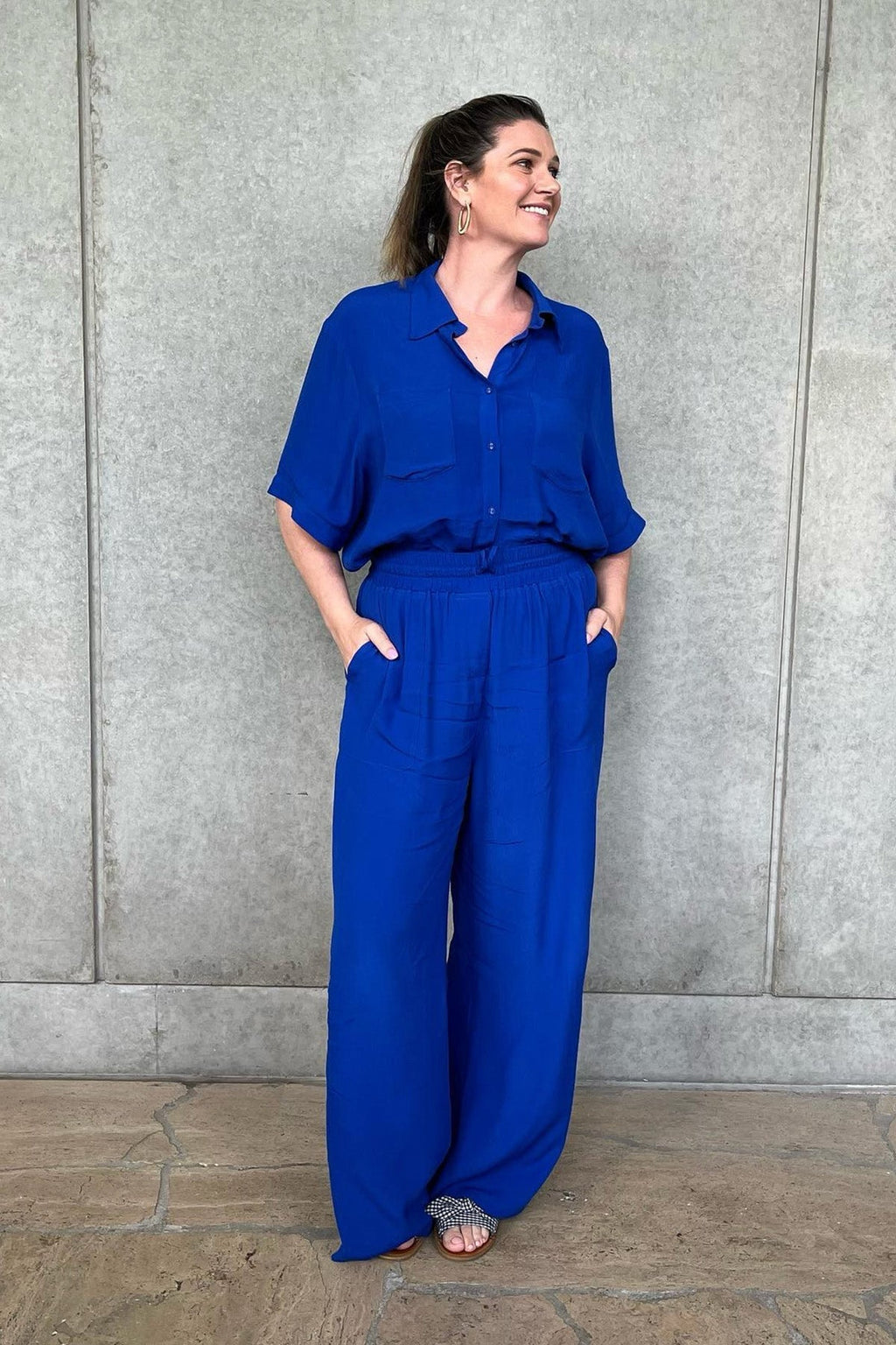 With a flattering high waistline, adjustable drawstring waist and wide leg silhouette, the Palazzo Pants are a beach-to-bar staple.